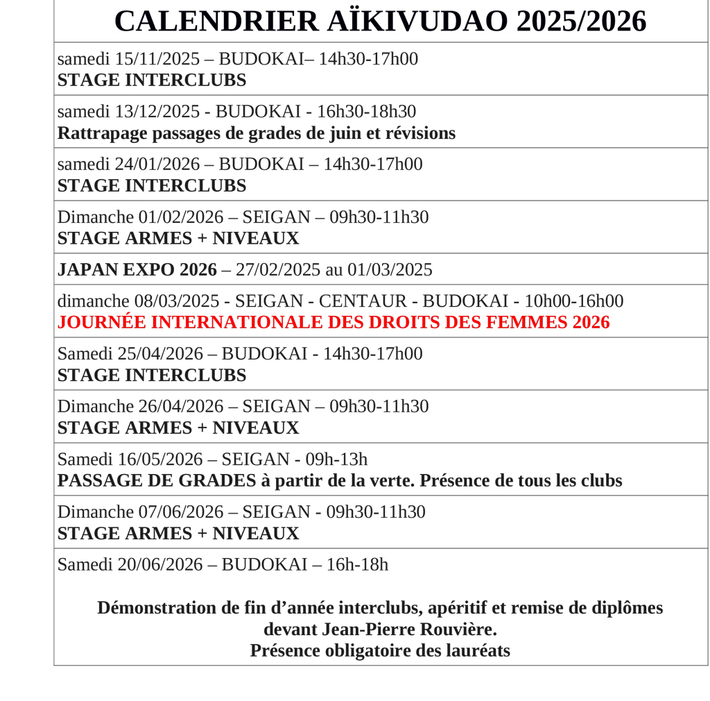 Calendrier 2025-2026 ensemble des activités de la saison sportive Ce calendrier est régulièrement mis à jour.